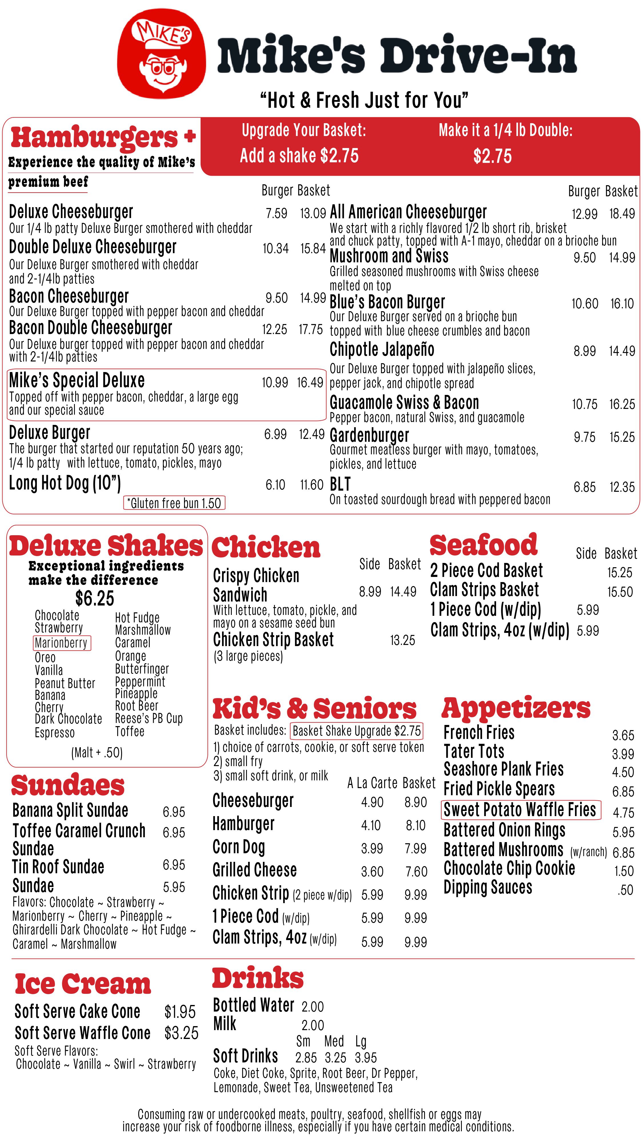 We're proud to offer a diverse and delicious burger menu. Our nine unique burgers feature 1/4 lb ground chuck beef, fresh lettuce, tomatoes, pickles, mayo, and onions. Each burger is cooked to order and served hot and fresh, just for you. It's fresh, it's delicious, and because you deserve the best. Serving quality since 1971.